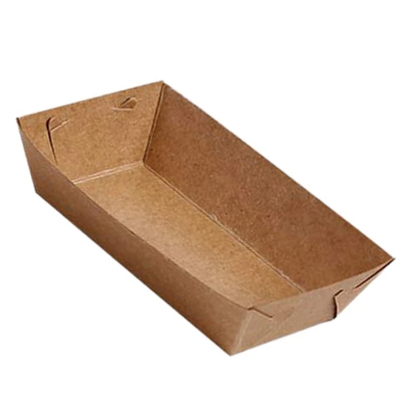 Best Seller 50Pcs Disposable Paper Food Serving Tray Kraft Paper Coating Boat Shape Snack Open Box French Fries