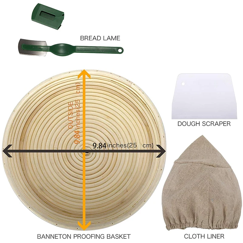 10 Inch Bread Proofing Basket - Banneton Proofing Basket + Cloth Liner + Dough Scraper + Bread Lame