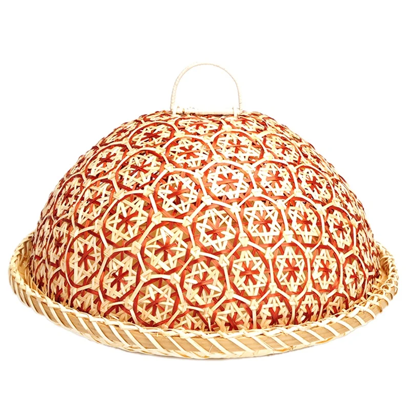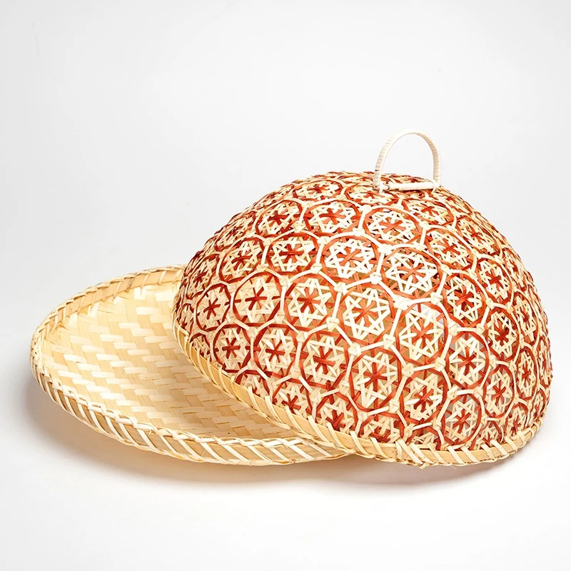 Handmade Bamboo Food Fruit Wicker Rattan Straw Basket Bread with Lid Round Plate Kitchen Storage Br